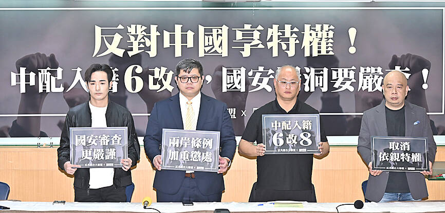 Kuma Academy chief executive officer Chu Fu-ming (朱福銘) said the groups are petitioning for the minimum number of years required for Chinese spouses to be naturalized being extended to eight years from six.