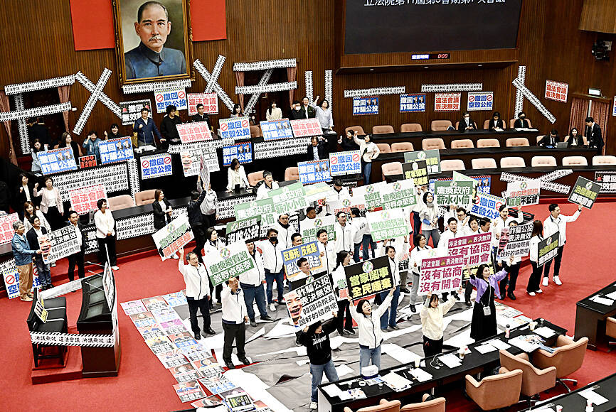 The DPP’s disruption of legislative activity prevented Premier Cho Jung-tai (卓榮泰) from continuing his report on the government’s policies and their implementation.
