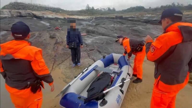 The Coast Guard Administration (CGA) this morning apprehended a Chinese man who unlawfully entered Taiwanese waters in an inflatable boat near Hanshehua (寒舍花) in Kinmen County.