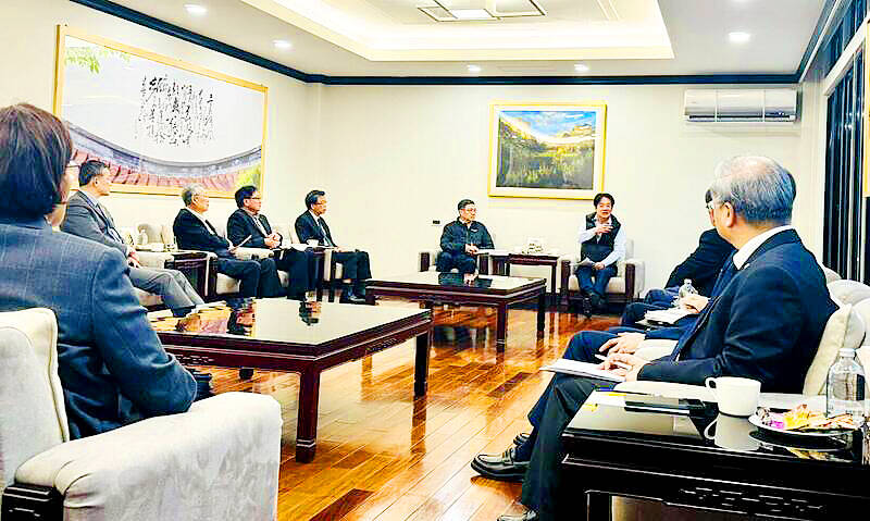 Lai met executives at his official residence to discuss how to respond to “the global economic and trade challenges brought about by the reciprocal tariff policy,” Presidential Office spokesperson Karen Kuo (郭雅慧) said in a statement.