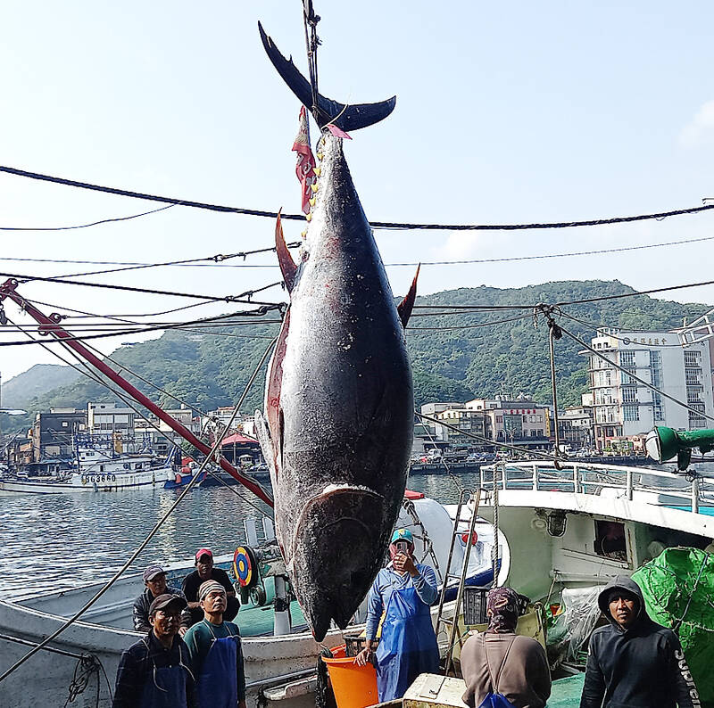 The honor is awarded to the first vessel to return to port with a live longline-caught tuna weighing at least 180kg, the Suao Township (蘇澳) Fishermen’s Association in Yilan County said.