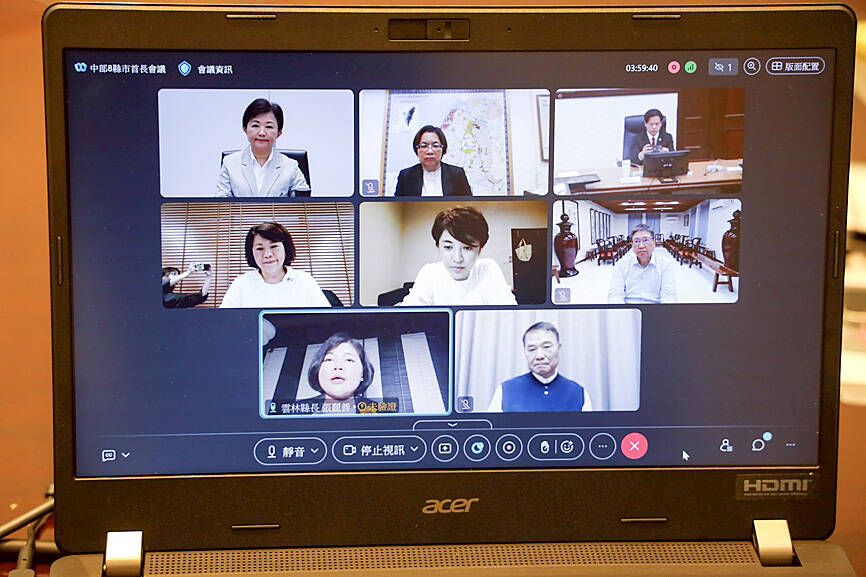 Taichung Mayor Lu Shiow-yen (盧秀燕) organized the virtual conference with the mayors and county commissioners of Hsinchu city and county, Chiayi City, and Miaoli, Changhua, Nantou and Yunlin counties.