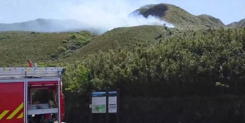 The Yangmingshan National Park Headquarters on Facebook said the Qixingshan (七星山) hiking trail starting from Xiaoyoukeng and the Xiaoyoukeng parking lot are closed as firefighters work to put out the blaze.