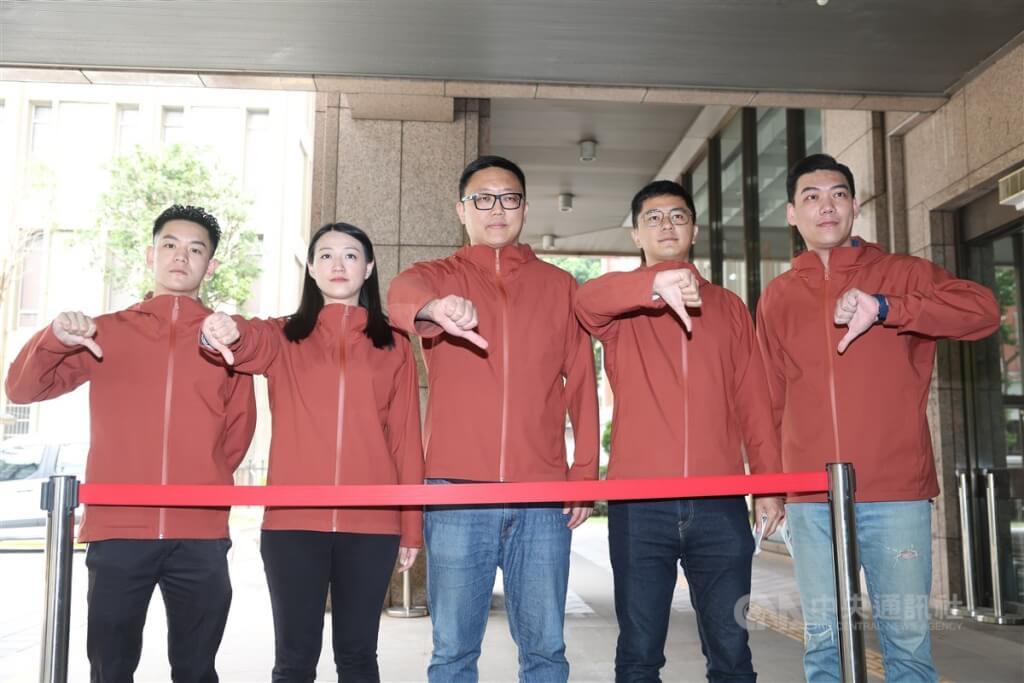 KMT Youth League members Lee Hsiao-liang (李孝亮) and Liu Szu-yin (劉思吟) — who are leading the effort to recall DPP caucus chief executive Rosalia Wu (吳思瑤) and Legislator Wu Pei-yi (吳沛憶) — both posted on Facebook saying: “I may be detained, but I will never surrender.”