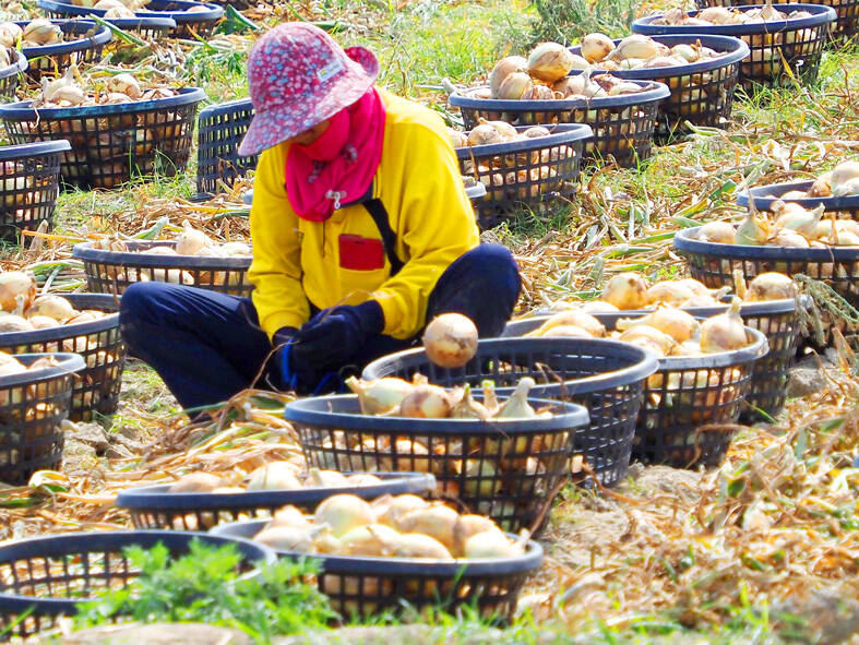 Tseng Pao-ting (曾寶霆), director of the association’s marketing department, said that onion farming is prone to weather conditions and requires a lot of labor.