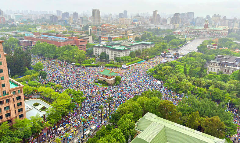 The legislature would motion for a presidential recall after May 20, Chinese Nationalist Party (KMT) Chairman Eric Chu (朱立倫) said yesterday at a protest themed “against green communists and dictatorship” in Taipei.
