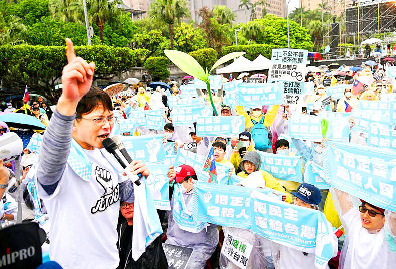 TPP Chairman Huang Kuo-chang (黃國昌) said at the protest they gathered to remind Lai and the DPP government that “Taiwan belongs to Taiwanese, not to Lai or the DPP.”