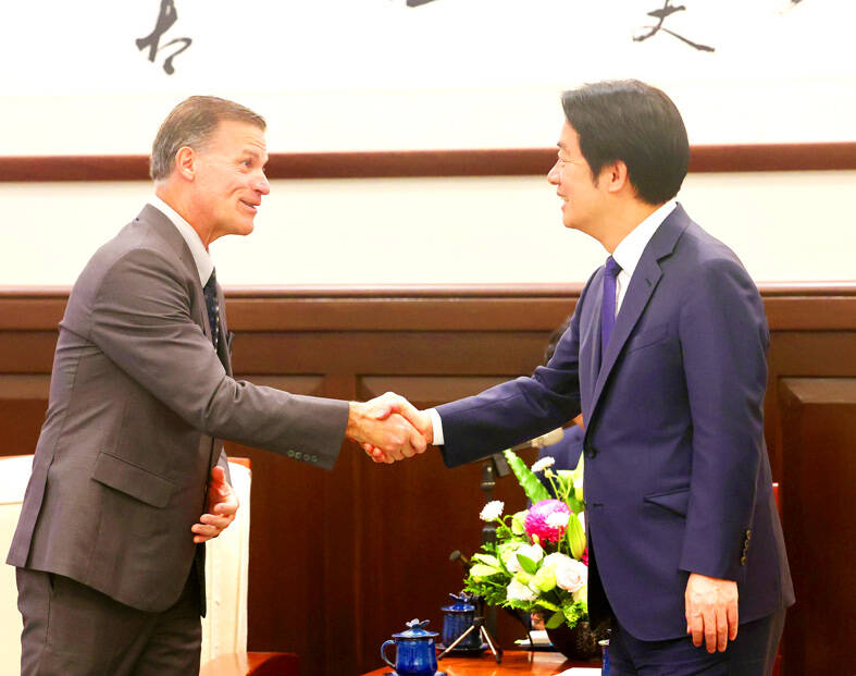 Taiwan’s flourishing democracy is crucial to regional peace and stability, former US Navy admiral John Aquilino said during a meeting with President William Lai (賴清德) in Taipei yesterday.