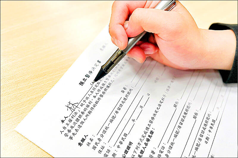 The requirement for people to sign advance decision forms to undergo ACP consultation, which costs NT$2,000 to NT$3,500, has been the main obstacle, resulting in only 103,000 people having signed them, representing less than 1 percent of all adults in Taiwan, the NHIA said.