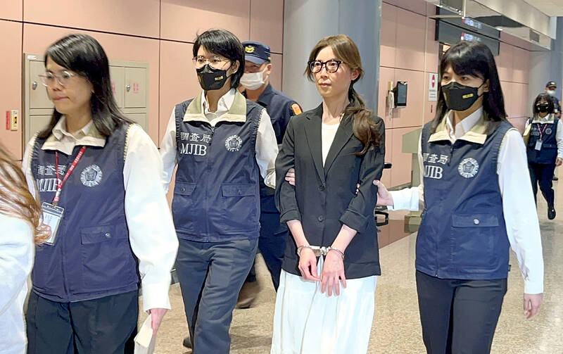 She was transferred to the Taipei District Prosecutors’ Office at 1:18pm, before being released later yesterday on NT$2 million (US$62,467) bail.