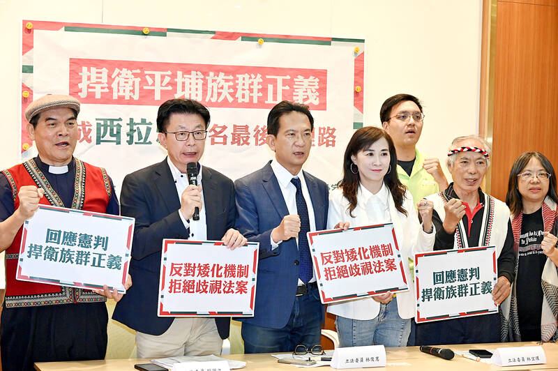 The lawmakers are pushing government officials to introduce amendments to the Indigenous Peoples Status Act (原住民身分法) and the Indigenous Peoples Basic Act.