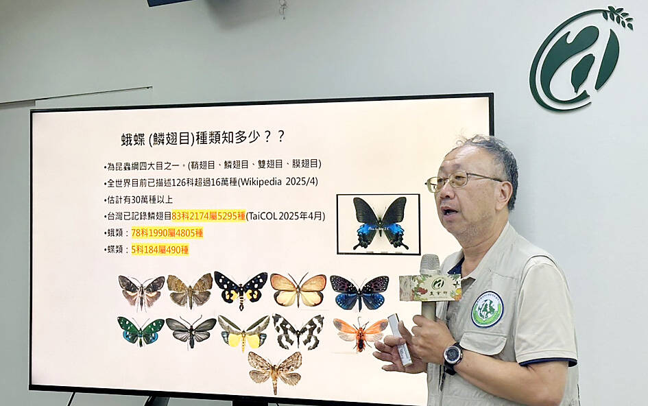Director of the Taiwan Biodiversity Research Institute Yang Jia-dong (楊嘉棟) on Wednesday told a news conference that people tend to mistake beautiful moths for butterflies, as both insects belong to the order Lepidoptera and look similar.