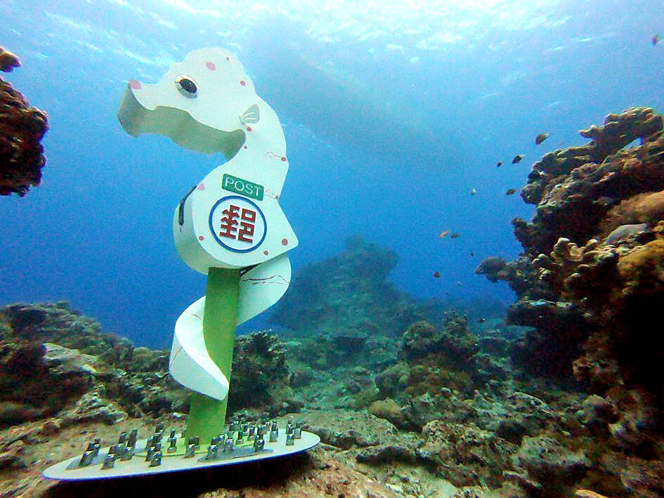 The pygmy seahorse-shaped mailbox in Green Island, which is installed about 11.5m underwater, was launched on May 4, 2018, Chunghwa Post chairman Wang Kwo-tsai (王國材) told the ceremony.