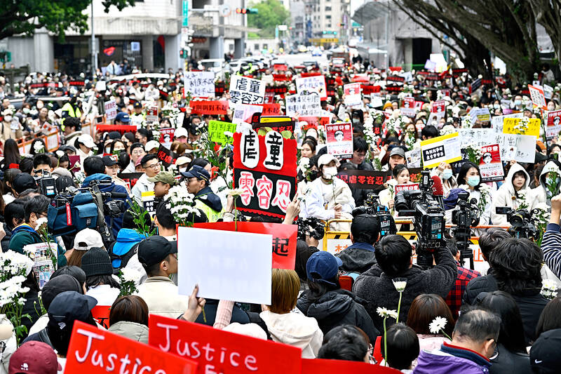Li Yu-chun (李侑宭), spokesperson for the Kai Kai online parents group, said her group had six demands, including the creation of a dedicated child protection agency and the introduction of a new offense of “abusive killing of a child” punishable by death or a life sentence without parole.