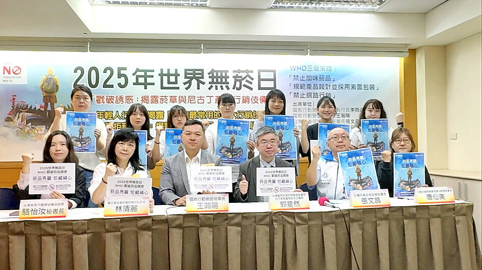 Taiwan Parents Protect Women and Children Association secretary-general Luo Yi-ru (駱怡汝) said they want to echo the WHO’s No Tobacco Day campaign and protect young people from the tactics of the tobacco industry, urging the government to implement their suggestions immediately.