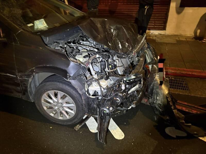 The driver of a "diversified taxi service" vehicle, identified by his surname Chen (陳), was heading east on Aiguo East Road when he suddenly veered off course, striking three parked cars and 10 scooters along the roadside before coming to a stop, the precinct said.