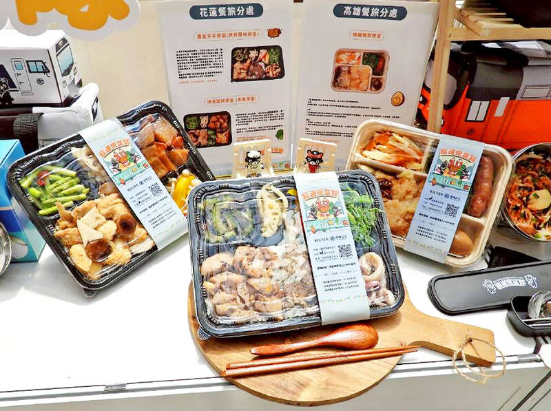 Assorted boxed meals are pictured at a Taiwan Railways Corp news conference in Taipei yesterday promoting the Formosan Railroad Bento Festival. The event is to run for four days at Taipei Railway Station starting on Friday with more than 57 domestic and overseas companies participating. To celebrate the event’s 10th edition, Taiwan Railways Corp is releasing 10 limited-edition boxed meals.
