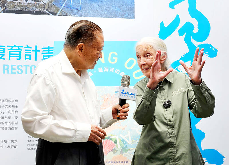 World-renowned zoologist Jane Goodall yesterday praised the efforts of Taiwanese manufacturing giant Delta Electronics Inc to restore coral in Taiwan and abroad.