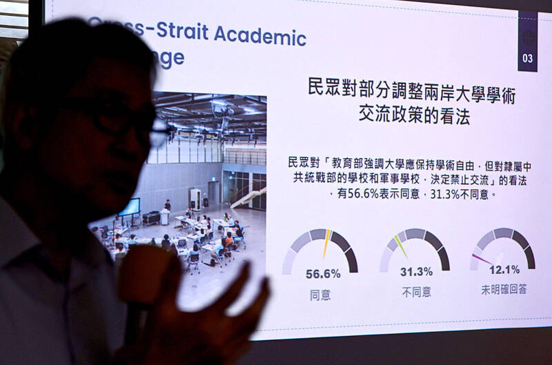 Asked about a ministry ban on universities and colleges from interacting with institutions tied to the Chinese People’s Liberation Army or United Front Work Department, 56.6 percent of respondents were in favor of the policy, he said.
