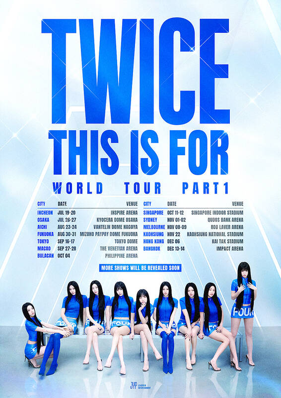 South Korean pop group TWICE is to perform in Kaohsiung on Nov. 22 as part of their 11-city THIS IS FOR world tour, the group announced on Sunday. It would be TWICE’s first performance in Taiwan after debuting 10 years ago, with local fans especially excited to see the group’s Taiwanese member, Chou Tzuyu (周子瑜). Chou is from Tainan, and became the first Taiwan-born and raised member of a South Korean girl group. The announcement drew excited comments such as: “Finally! We’ve been waiting for TWICE,” and “Tzuyu finally comes back for a concert in Kaohsiung!” Along with Blackpink’s concert on Oct. 18 and 19, Kaohsiung is to host two big-name girl group performances this year. The upcoming performances would also make Blackpink the first girl group to perform twice at the Kaohsiung National Stadium. It would be the group’s third visit to Taiwan to stage a concert.