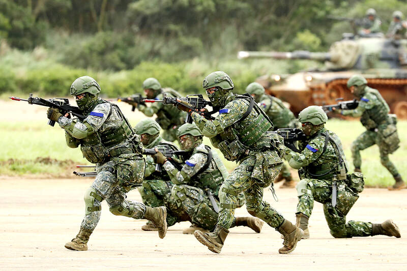 The simulation was set in 2030, and assumed that Taiwan had already acquired planned asymmetric capabilities, Council on Strategic and Wargaming Strategies director-general Huang Chieh-cheng (黃介正) said on the first day of the exercise, adding that it focused primarily on a military conflict, minimizing political and economic factors.