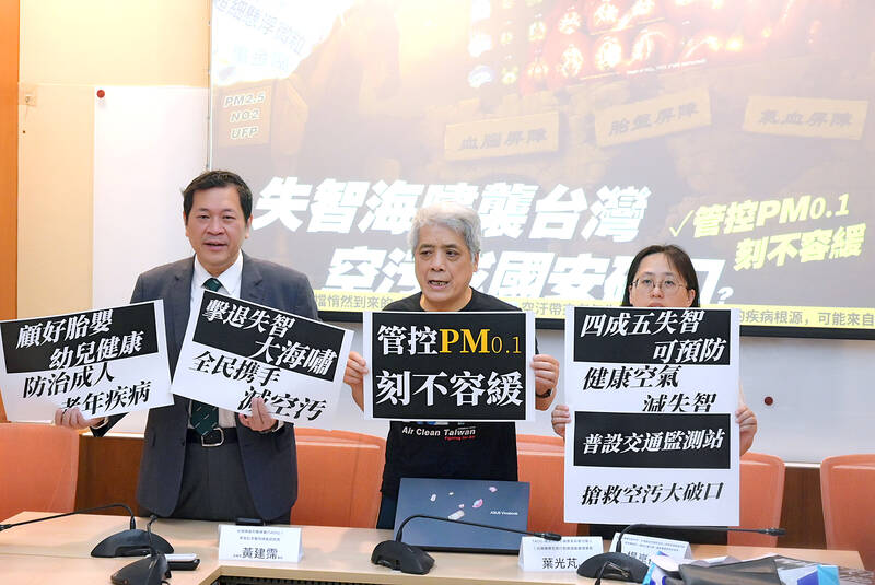 Non-governmental organizations and medical groups yesterday urged the government to enhance air pollution monitoring, warning that exposure to pollutants such as fine particulate matter smaller than 2.5 micrometers (PM2.5) can contribute to the development of dementia and other major health issues.