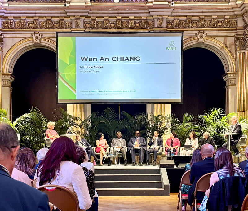 Taipei Mayor Chiang Wan-an (蔣萬安) on Monday highlighted Taipei’s environmental governance policies, especially those on waste disposal and traffic, at a summit in Paris of world mayors focused on climate change.