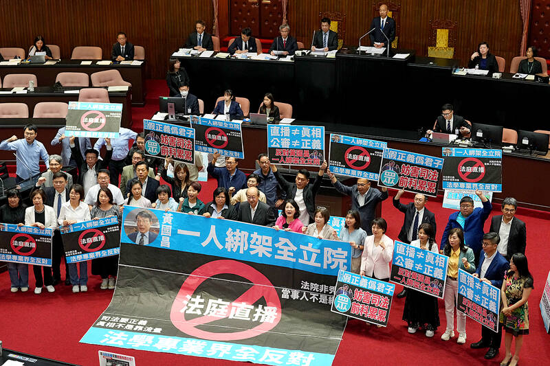 The Taiwan People’s Party (TPP) and the Chinese Nationalist Party (KMT) yesterday jointly passed amendments to the Court Organization Act (法院組織法) that would conditionally permit the live broadcasting of court proceedings.