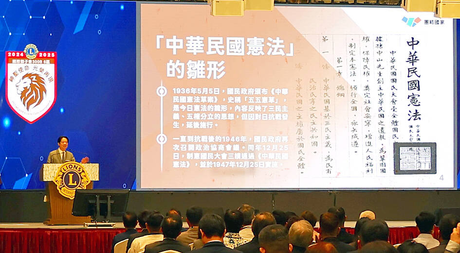 In Hsinchu City yesterday, Lai focused on the constitutional system in the third of his 10 lectures on national unity.