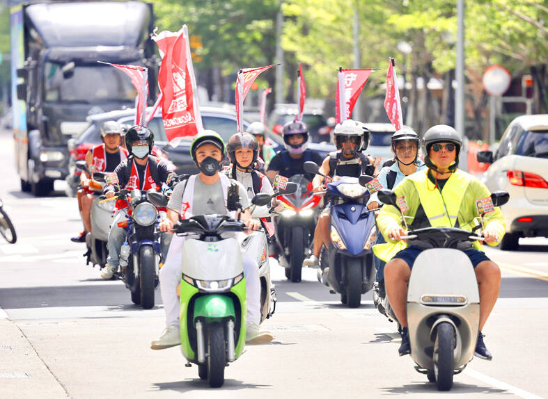 A coalition of civic groups yesterday held a motorbike parade in Taipei and New Taipei City to support a campaign to recall opposition lawmakers before a nighttime rally near the Legislative Yuan in Taipei.