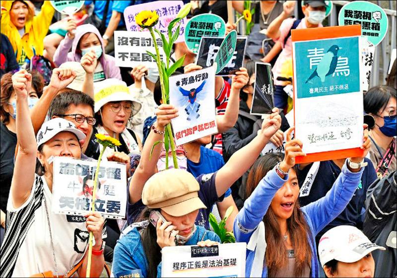 The Bluebird movement began during protests against legislative reform bills proposed by the KMT and TPP last year.
