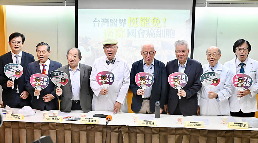 Doctors and physicians’ associations yesterday urged people to support the upcoming recall votes, comparing Chinese Nationalist Party (KMT) lawmakers to cancer cells that must be removed to restore the health of the legislature and society.