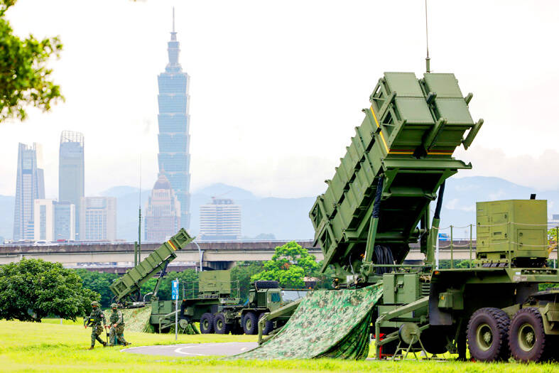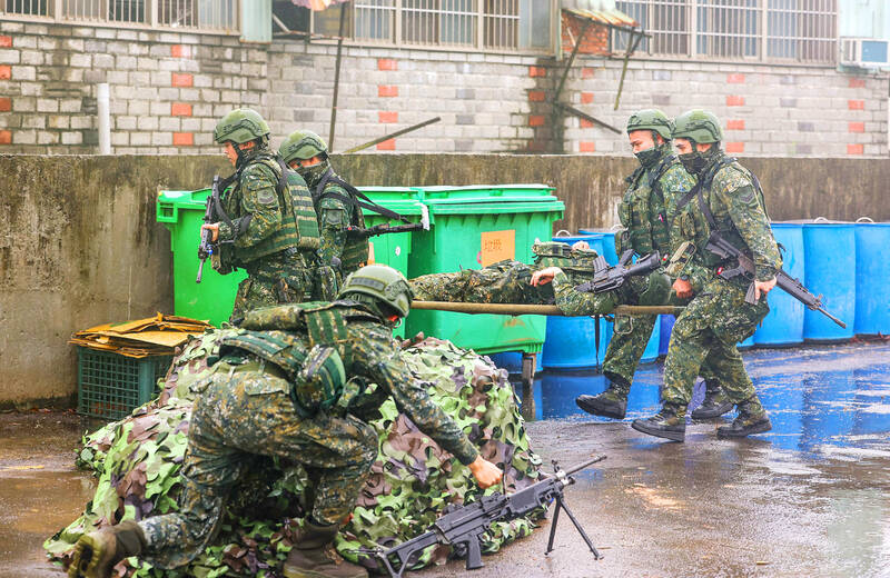 Naval units on Thursday deployed anti-ship missiles and the air force practiced “hot refueling,” while the army conducted a drill simulating Chinese operations aimed at seizing control of Taiwan Taoyuan International Airport and civil defense mechanisms were activated, such as emergency air-raid drills at PX Mart stores.