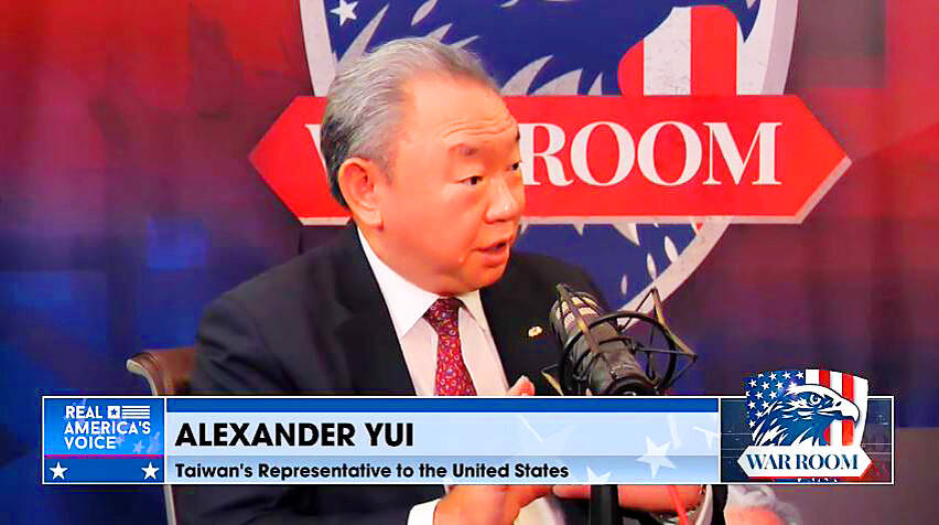 Taiwan’s military spending accounts for about 5 percent of GDP, based on NATO standards, including 1.5 percent spent on boosting infrastructure resilience, Representative to the US Alexander Yui told former White House senior adviser Steve Bannon’s War Room podcast on Thursday.