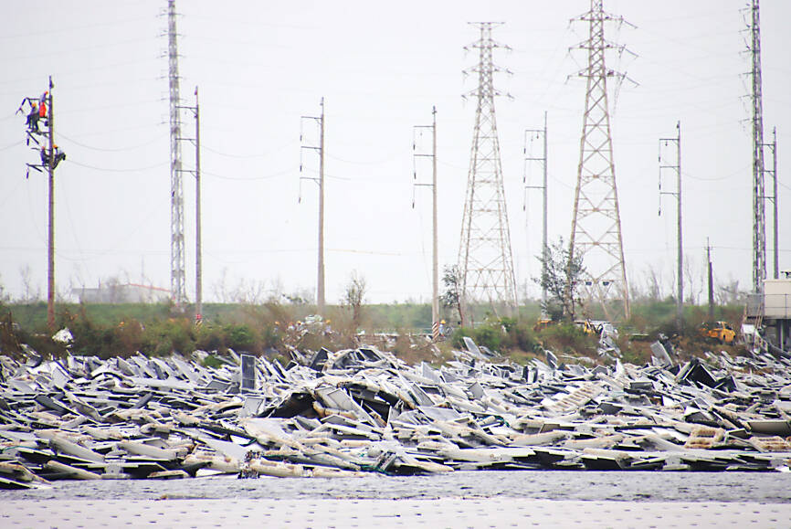 Sun Rise E&T Corp said that debris found along the coast of Pingtung Country’s Jiadong Township (佳冬) and Siaoliouciou Island (小琉球) after the typhoon was not solar panels, but floating walkway planks, which have been promptly cleared.