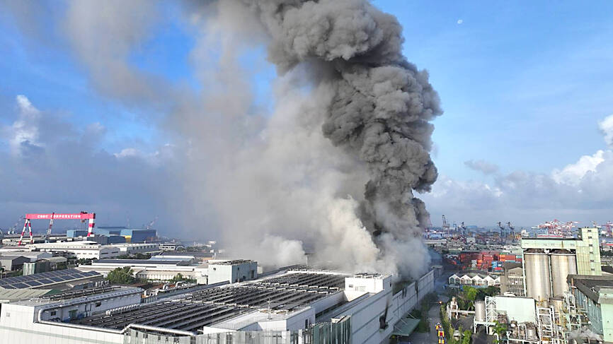 Residents in 13 neighborhoods in Kaohsiung have been advised to stay indoors and close their windows, due to pollution following a fire yesterday morning at a lithium-ion battery cell factory in Siaogang District (小港), Kaohsiung Mayor Chen Chi-mai (陳其邁) said.