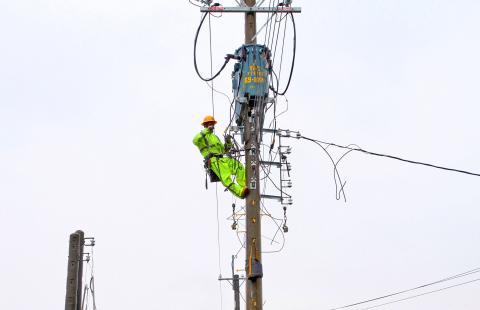 The Chiayi County Fire Bureau said that it received a report at 4:58pm about a Taipower worker being electrocuted on Township Road 26 in Yijhu Township.