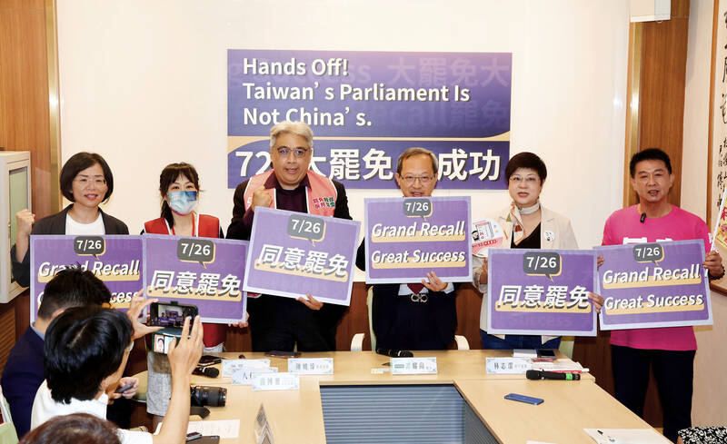 Chen Hsiao-wei (陳曉煒), a Presbyterian Church pastor in Taoyuan, said the citizen groups had assessed that they would able to oust a minimum of 12 KMT lawmakers in the recall votes on July 26 and Aug. 23.