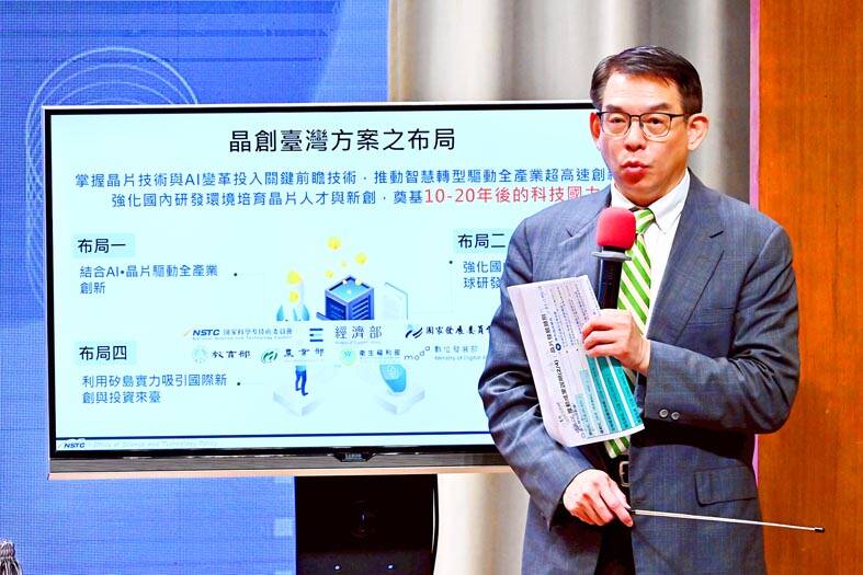 Office of Science and Technology Policy Deputy Executive Director Lu Pei-jung (呂佩融) said the council’s role in the policy is to support semiconductor research and development.
