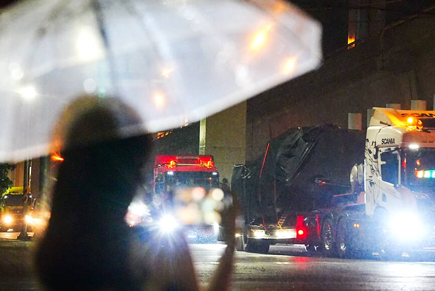 A second batch of 42 M1A2T Abrams tanks purchased from the US arrived at the Port of Taipei on Sunday and were transported in the early hours of yesterday to the army’s Armored Training Command in Hsinchu’s Hukou Township (湖口).