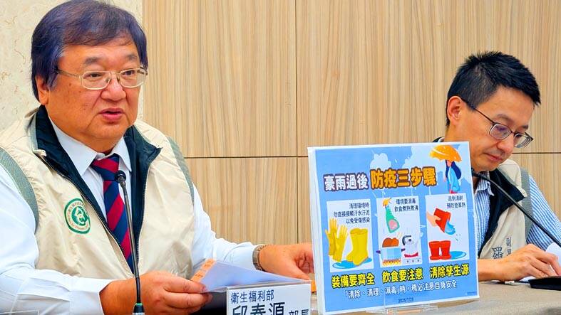 Pools of stagnant water have formed and many areas faced flooding after heavy rain recently, heightening the risk of leptospirosis, melioidosis, gastrointestinal diseases and other infectious diseases from contaminated water or soil, Minister of Health and Welfare Chiu Tai-yuan (邱泰源) told a news conference in Taipei.