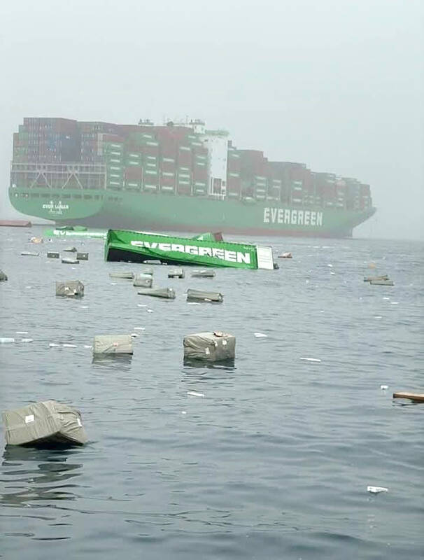 Evergreen Marine Corp, Taiwan’s largest container shipper, yesterday said that all crew members aboard the Ever Lunar (長月) were safe after dozens of containers fell overboard off the coast of Peru the previous day.
