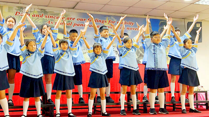 Children of the Kaohsiung Hakka Children’s Choir perform in Penang City, Malaysia, in an undated photograph. The Kaohsiung Hakka Affairs Council signed a memorandum of understanding with the Penang Hakka Association of Malaysia in Penang City yesterday.