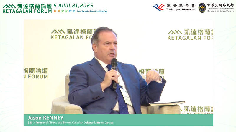 Former Canadian minister of national defense Jason Kenney said that former prime minister Justin Trudeau had allowed close ties with Beijing elites to dictate the Canadian government’s China policy, but Ottawa is becoming alert to the threat posed by Chinese President Xi Jinping’s (習近平) expansionist agenda on Taiwan, Japan and the Philippines.