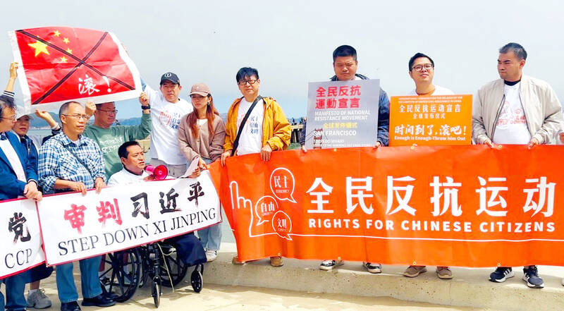 Speakers in San Francisco, including Tiananmen massacre survivor Fang Zheng (方政) and activist Wang Han (王涵), called for ending one-party rule and urged nonviolent resistance.
