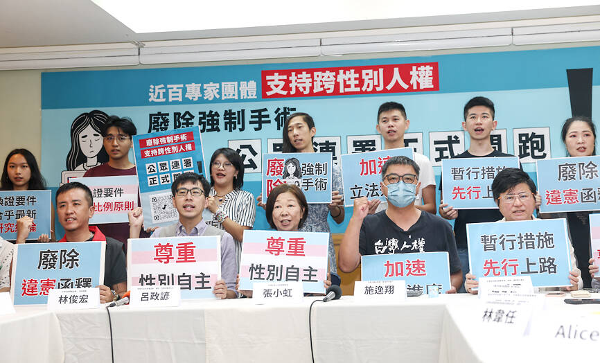 The alliance at a news conference yesterday announced a public petition to abolish the mandatory surgery requirement, calling on all who support transgender rights to speak out together.
