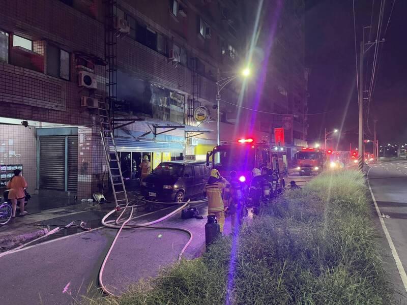 Three people died in a fire that broke out early this morning on the first two floors of a 10-story building in Kaohsiung's Linyuan District (林園), the city's fire department said.