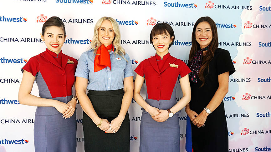 For itineraries starting from Jan. 19 next year, passengers can book a single ticket from CAL, which would include the flight from Taiwan to one of its US gateways, with connections to Southwest flights to cities such as Las Vegas, Nevada; Dallas and Houston, Texas; Denver, Colorado; Atlanta, Georgia; and Chicago, Illinois, China Airlines’ Web site says.
