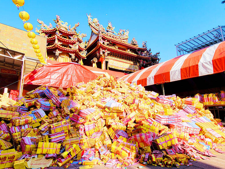 More than 200,000 tonnes of joss paper are burnt in Taiwan every year, Minister of Environment Peng Chi-ming (彭啟明) said at Yuqing Temple (玉清宮) in Miaoli County earlier this month.