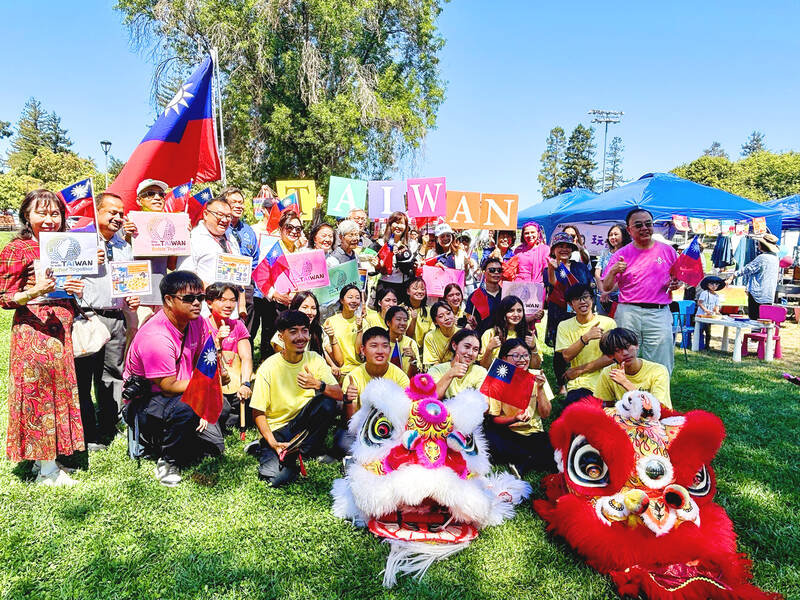 Families and attendees pose for a photograph at the 15th annual Kids Fun Festival hosted by the Taiwanese Cultural and Sports Association at Memorial Park in Cupertino, California, on Saturday. The largest multicultural event in the San Francisco Bay Area featured more than 130 stalls representing 14 countries, hosting cultural exchanges, performances, children’s activities and serving up authentic Taiwanese street food.